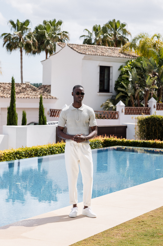 Capo Egyptian Cotton DIAMOND SS Zip Polo Shirt - Stone